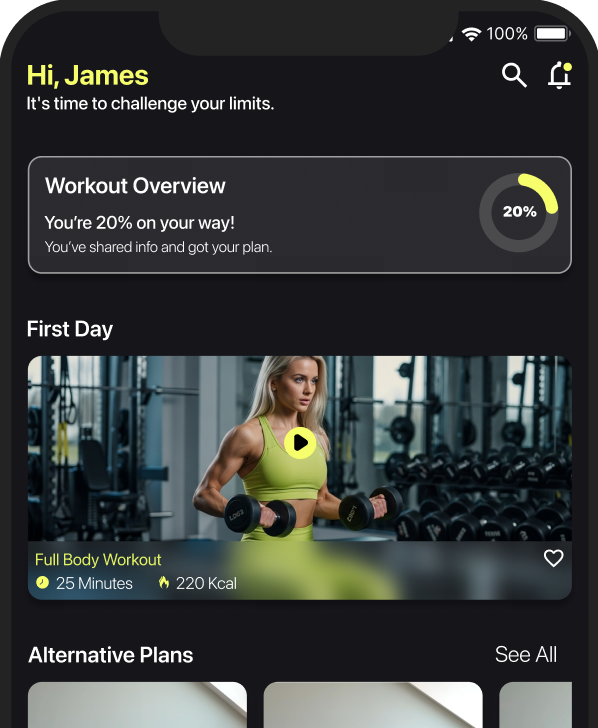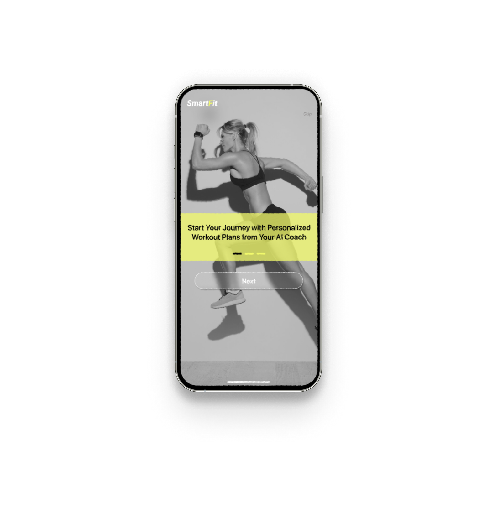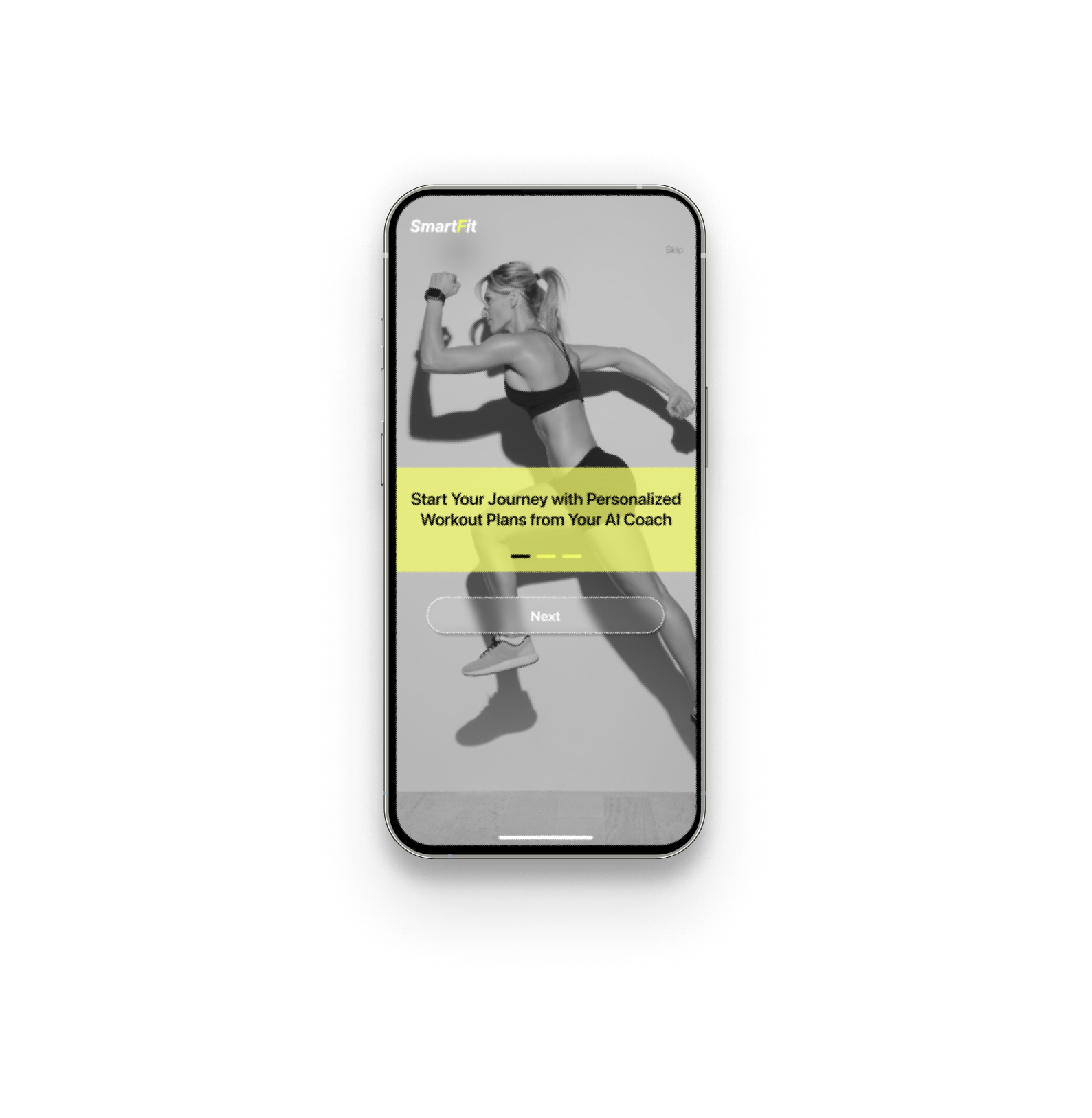 SmartFit is an AI-powered fitness app that delivers personalized workout plans & features an AI coach. In the original concept, users sign up, get scanned by AI, and receive a personalized program based on their goals, body type, & lifestyle. After signing up, users start working out with the AI coach, who corrects their form in real time to help them get the best results and stay safe.